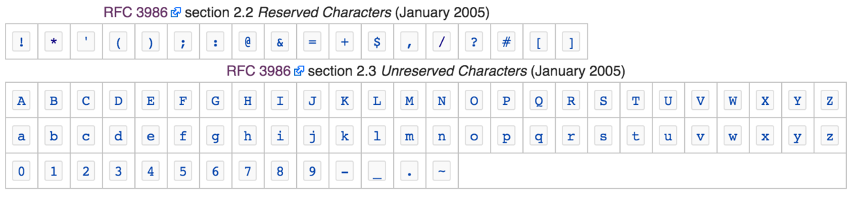 - RFC 3986 - Uniform Resource Identifier (URI): Generic Syntax
